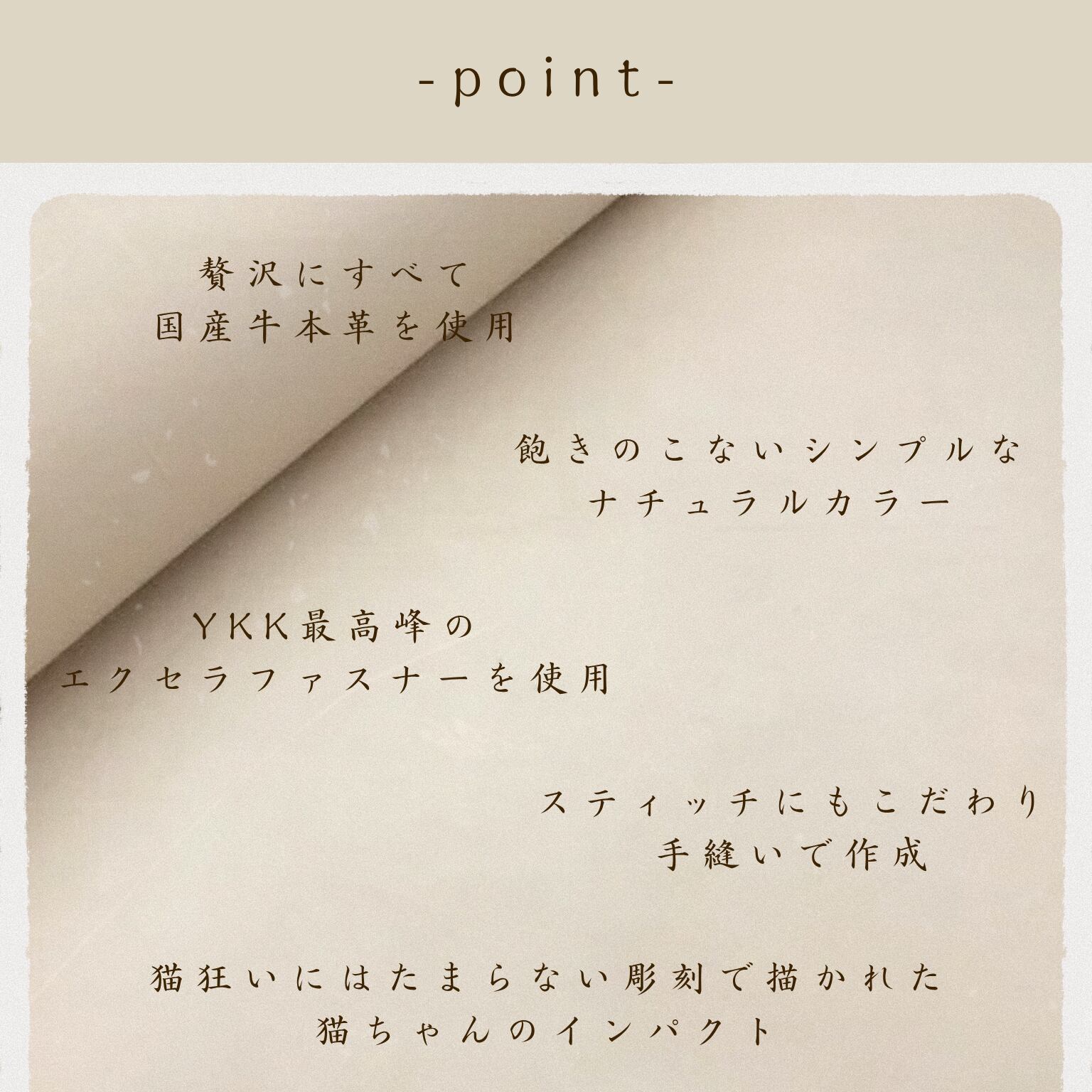 商品に使用している革は、全て牛の上質なヌメ革になり、